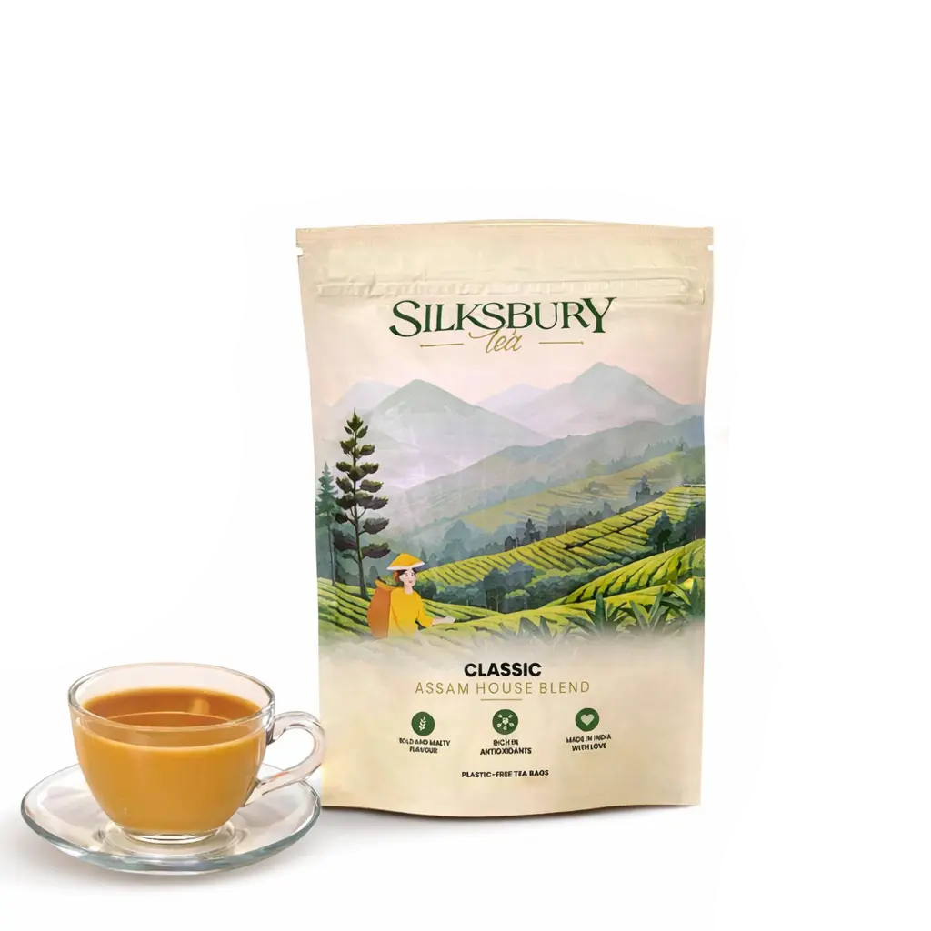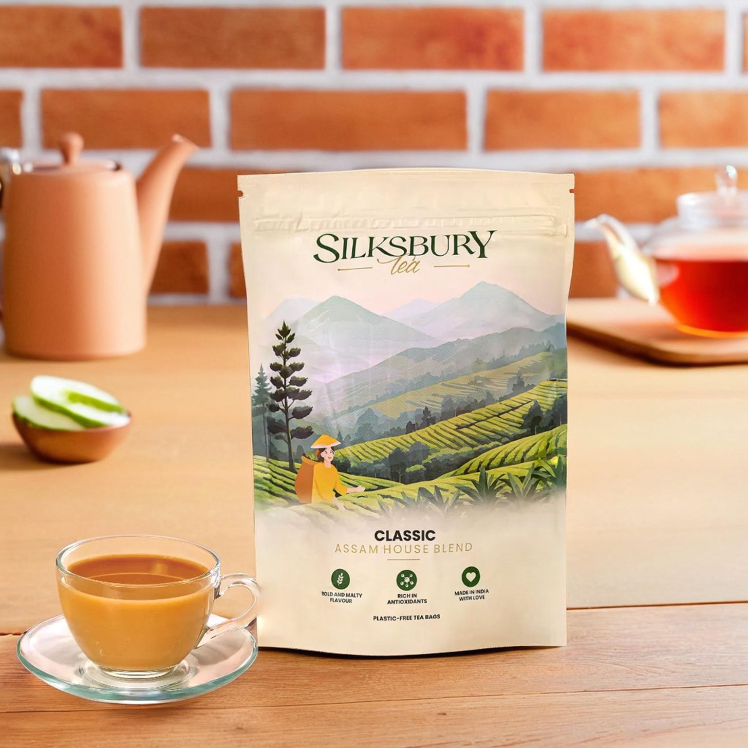 Silksbury Tea brings you handcrafted blends made in small batches, using ethically sourced leaves from India’s finest gardens. Inspired by a mother-daughter vision, our teas offer bold flavor, rich aroma, and pure wellness. With plastic-free tea bags and eco-friendly packaging, every sip celebrates tradition, care, and mindful living.